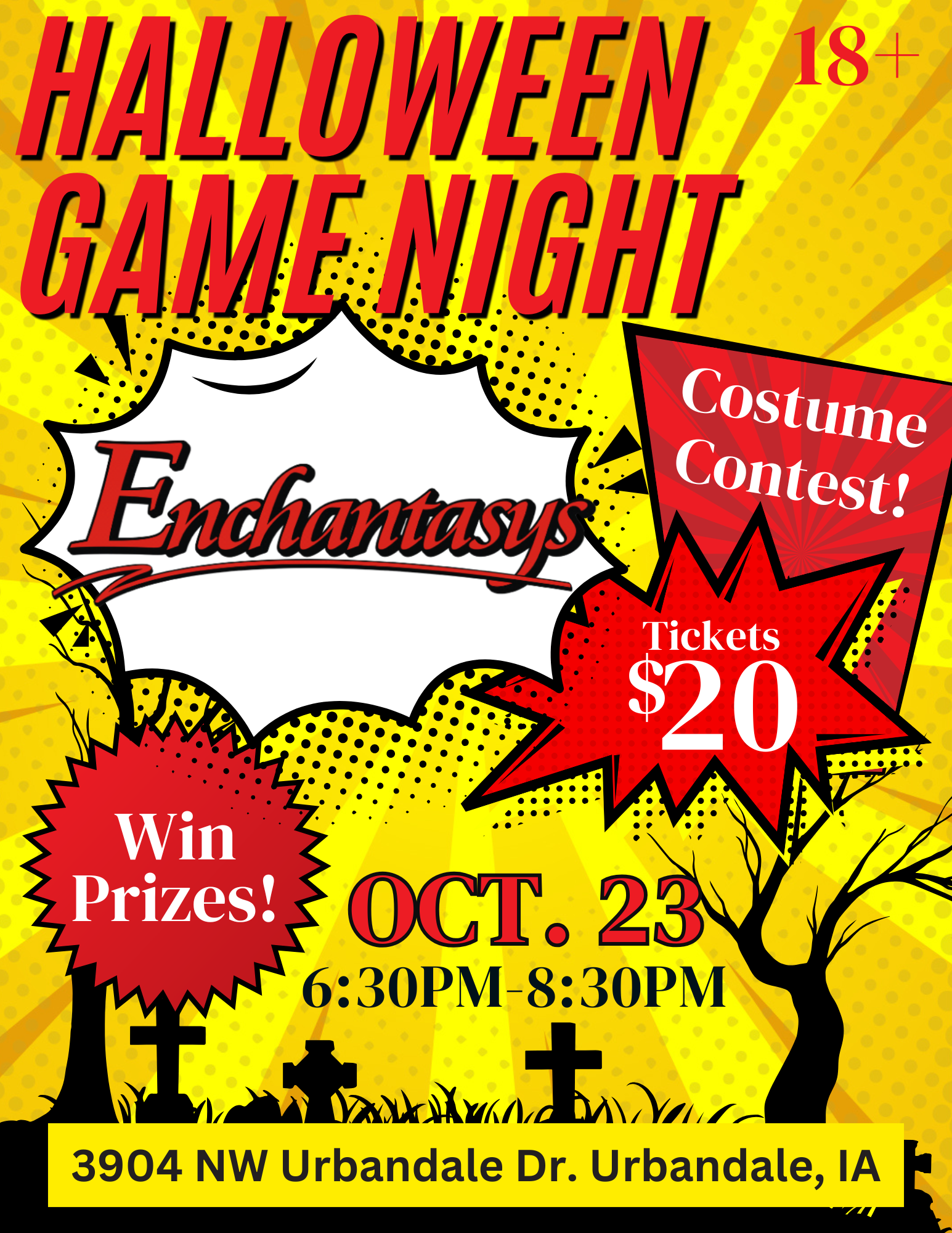 Bring your friends or your partner for a night of fun and laughter at Enchantasys! Enjoy 6 rounds dirty bingo, trivia, and a costume contest with exciting prizes for winners!
